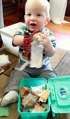 4. Ako ste u zadnje vrijeme šivali nešto, možda imate ostatke tkanina. Sve te komadiće nemojte bacati, nego iskoristite da dijete isprobava različite teksture i oblike. također tkanine mogu poslužiti i za vezanje, izvlačenje, provlačenje kroz razne kutijice…