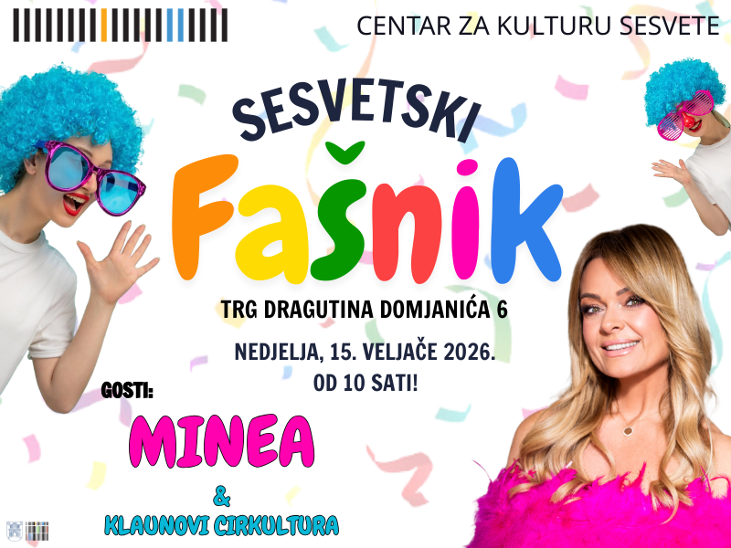 Centar za kulturu Sesvete, pripremio je za ovo karnevalsko, najveselije vrijeme u godini još veseliji program pun plesa, pjesama, maski, klaunova, nagrada i još mnogočega! U nedjelju, 15. veljače 2025. od 10h na Trgu Dragutina Domjanića održat će se tradicijski Dječji sesvetski fašnik, a u sklopu zabavnog programa nastupit će: