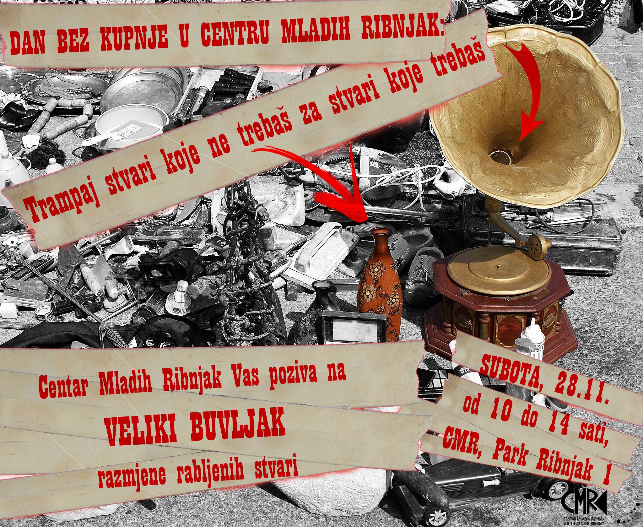 U Centru mladih Ribnjak, 28.11 u 11 sati održat će se Šuma priča, lutkarska predstava za djecu od 1 do 7 godina, pri čemu ulaznicu možete dobiti u zamjenu za neku rabljenu stvar (od 10 sati održavat će se Buvljak razmjene rabljenih stvari čime se obilježava međunarodni Dan bez kupnje).