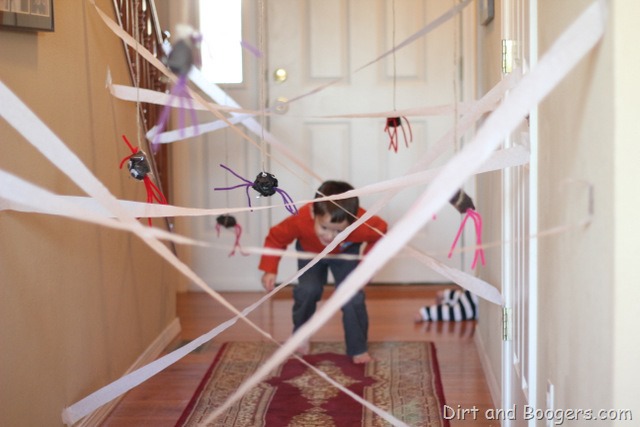 Odmah da upozorimo, ovo je igra za kreativne i strpljive roditelje jer prvo treba napraviti paukovu mrežu u jednom dijelu stana uz pomoć dugih traka krep papira kojeg ćete ispreplesti i zalijepiti po zidovima da izgledaju kao paukova mreža. Od običnog papira možete napraviti i male pauke koje ćete naravno obojati u crno (ako vam se da, možete im napraviti i krakove) i objesiti da vise s nekoliko mjesta na paukovoj mreži. Zadatak je provlačiti se kroz paukovu mrežu i izbjegavati strašna mala bića. Ova igra je dobra i za dječji rođendan jer će pobuditi natjecateljski duh i uzrokovati puno vrištanja i smijeha.