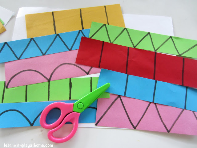 Ova igra je izvrsna za razvoj fine motorike i spretnosti. Neka dijete od kolaž papira prvo nareže malo deblje trakice, a potom na njima nacrtajte razne oblike i šare. Zadatak je naravno, dječjim škarama, probati rezati po crti – igra koja zaokuplja na dulje vrijeme, a dijete uči rukovati škarama i razvija koordinaciju oka i ruke.