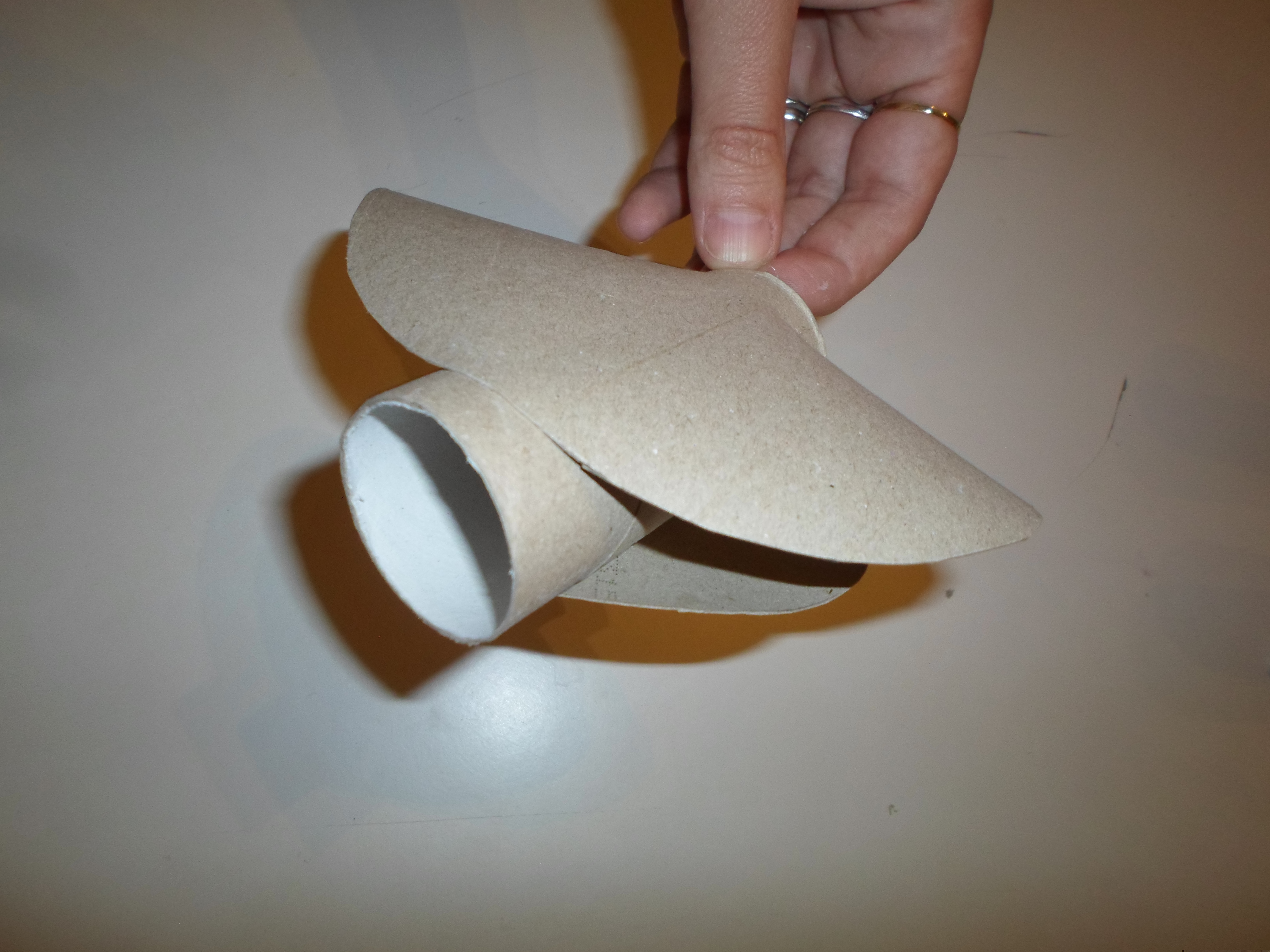 Za svaki avion potrebne su vam dvije rolice. Jedna rolica predstavlja tijelo aviona, jedan rub te rolice ćete lagano zaobliti i na taj zaobljeni rub zalijepiti (ili zarezati) čep dudicu.