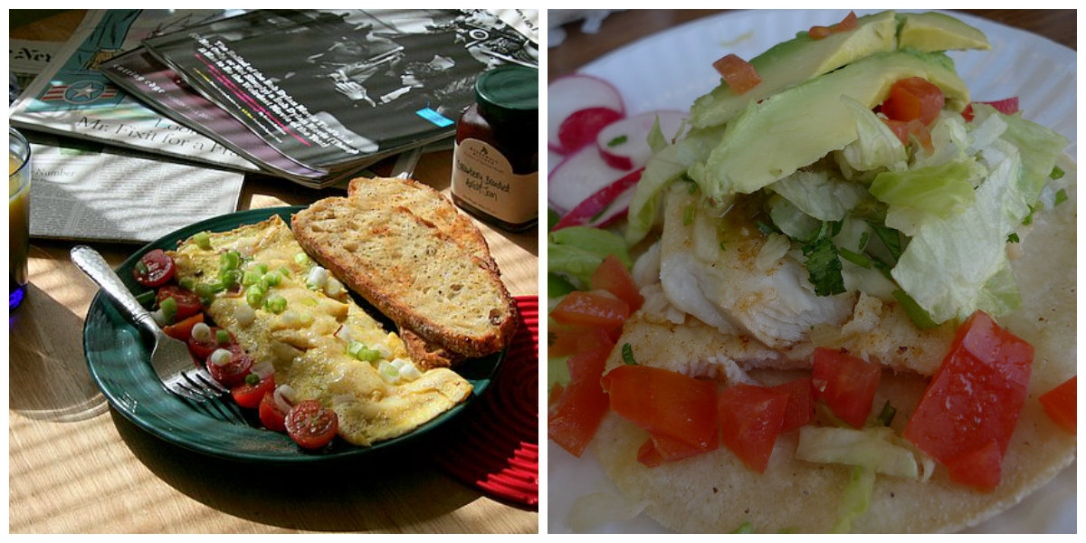 Narežite 1 tanjur nasjeckane zelene salate romana, jednu šalicu crvenog zelja, pola šalice narezane žute i crvene rajčice, jedna mrkva narezana, 1 šalica (iz konzerve ili već skuhanog) bijelog i crvenog graha, jedna šaka svježeg ili sušenog korijandera, jedna žlica maslinovog ulja, sok od pola limete i prstohvat morske soli. Servirajte s četiri kukuruzne tople tortilje i prelijte s crvenim umakom od rajčice.