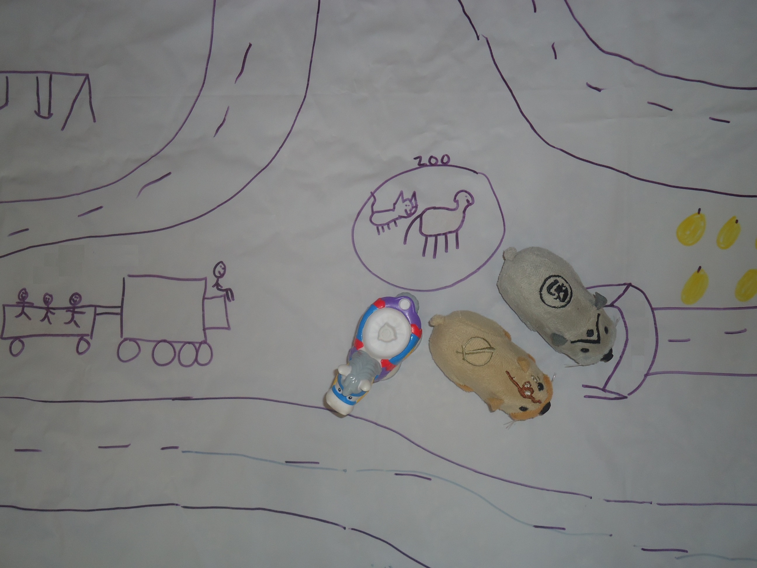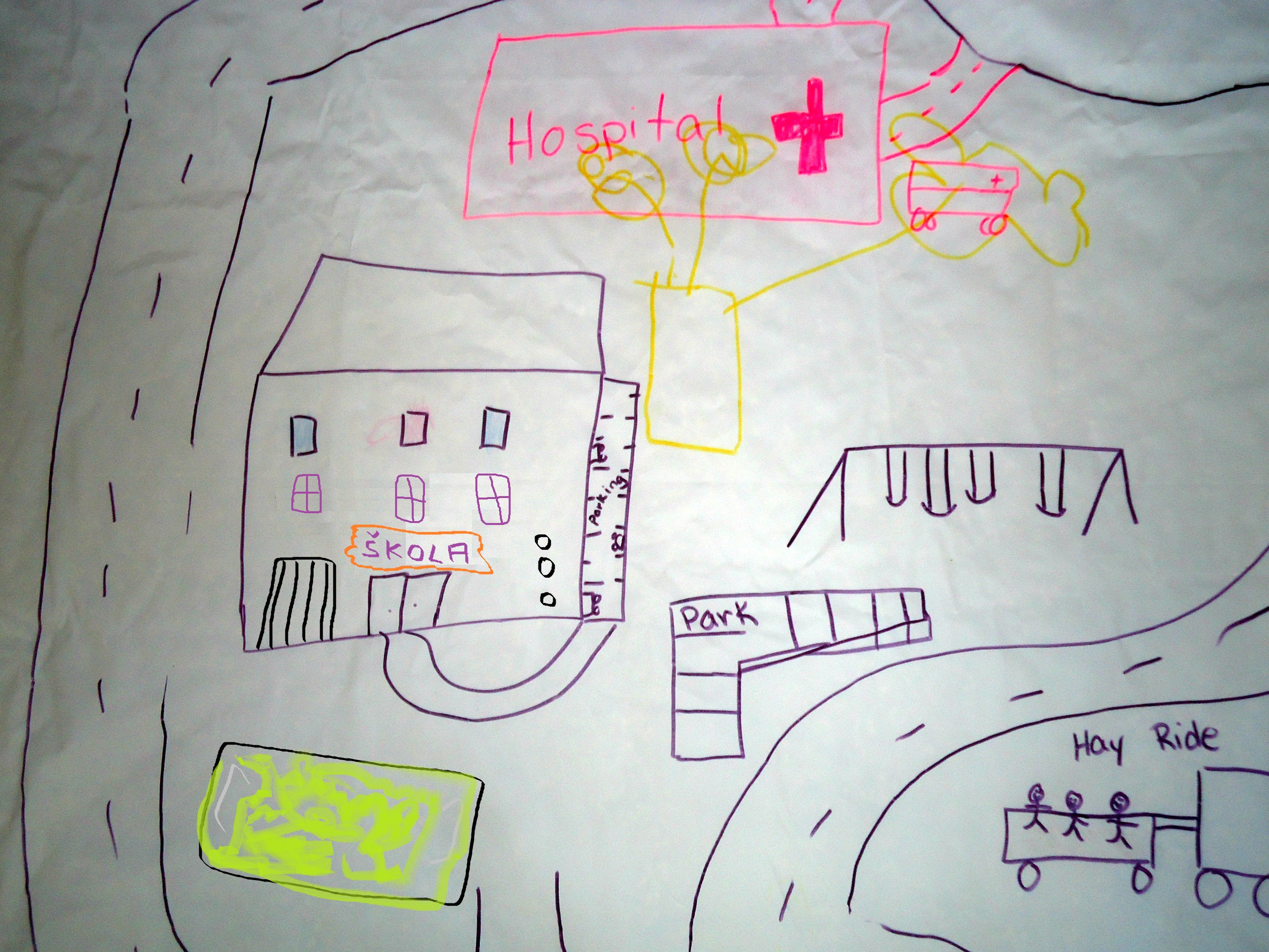 Osim što će djeca uživati kasnije u igri, zajedno se zabavite i prilikom izrade grada. neka djeca crtaju ili boje kuće, jezero, ribe, fontane, crtaju tračnice i slično.