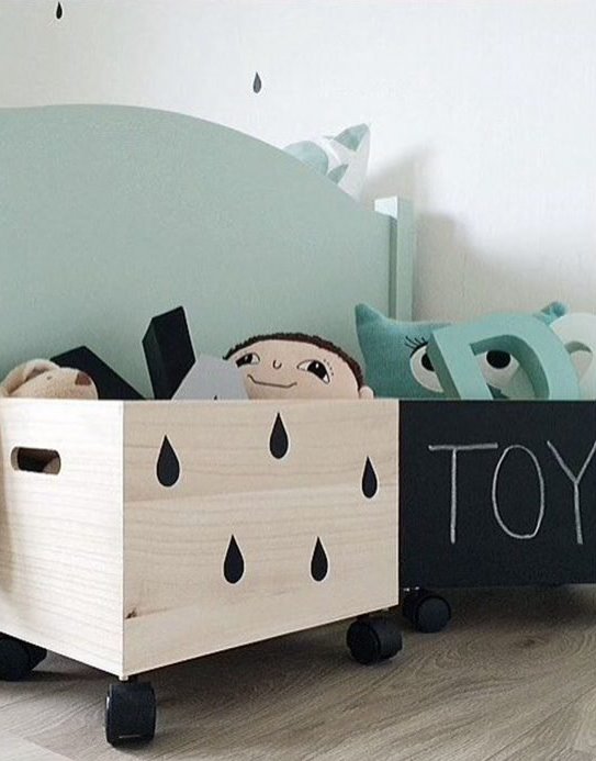 Velike drvene kutije na kotače odlična su odlagališta za dječje igračke jer ih možete “seliti” po kući prema potrebi. Još ako su oslikane dopadljivim motivima, dodatni su ukras dječjoj sobi. Oslikati ih možete i sami omiljenim motivima vašeg djeteta ili pustiti njemu da se likovno izrazi.