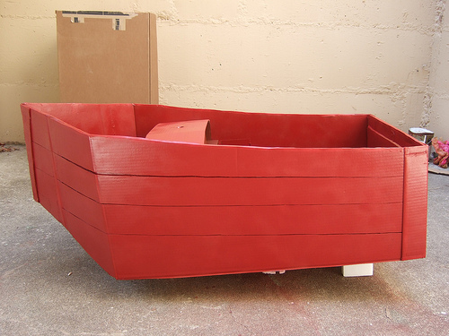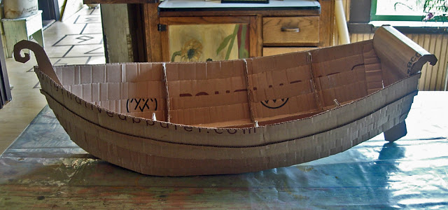 Odignite pod pramca broda da se dobije forma i pojačajte cijelo dno s još jednim slojem kartona.Sve rubove obljepite trakama…