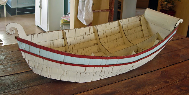 Izrežite dno u obliku čamca te na njega zalijepite rebra kao na slici te stražnju sranicu