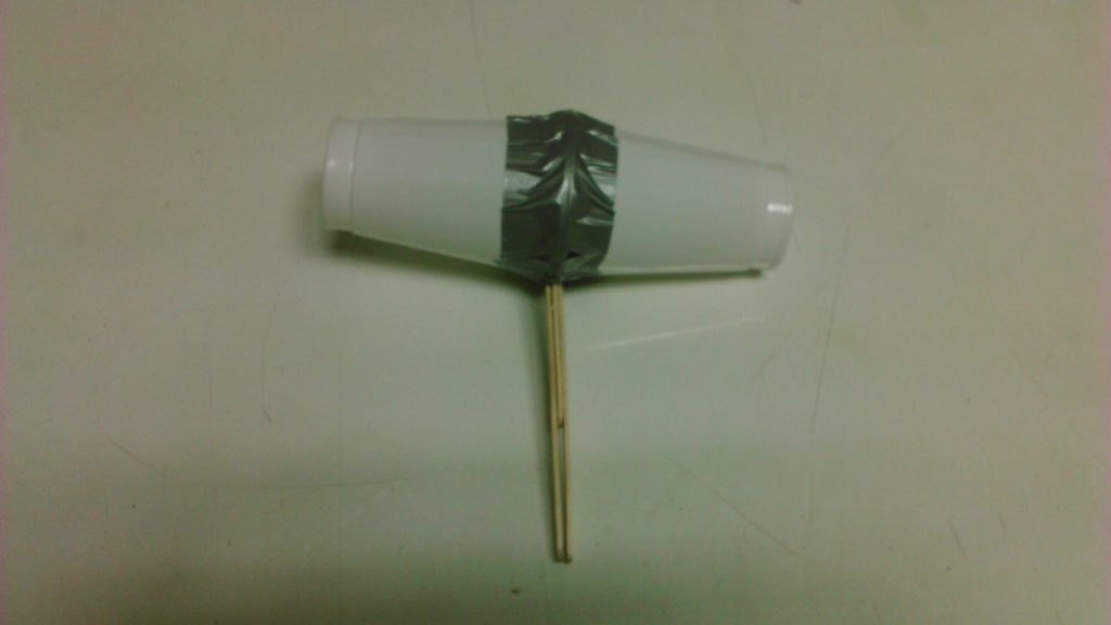 Čvrstom ljepljivom trakom spojite čaše i štapiće. Omotajte nekoliko puta kako biste bili sigurni da se čaše neće razdvojiti i da štapići čvrsto stoje između njih.