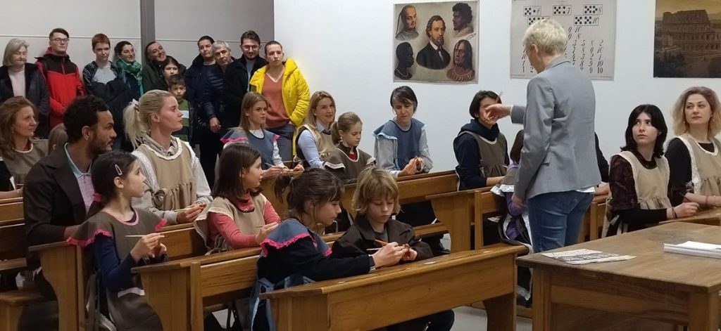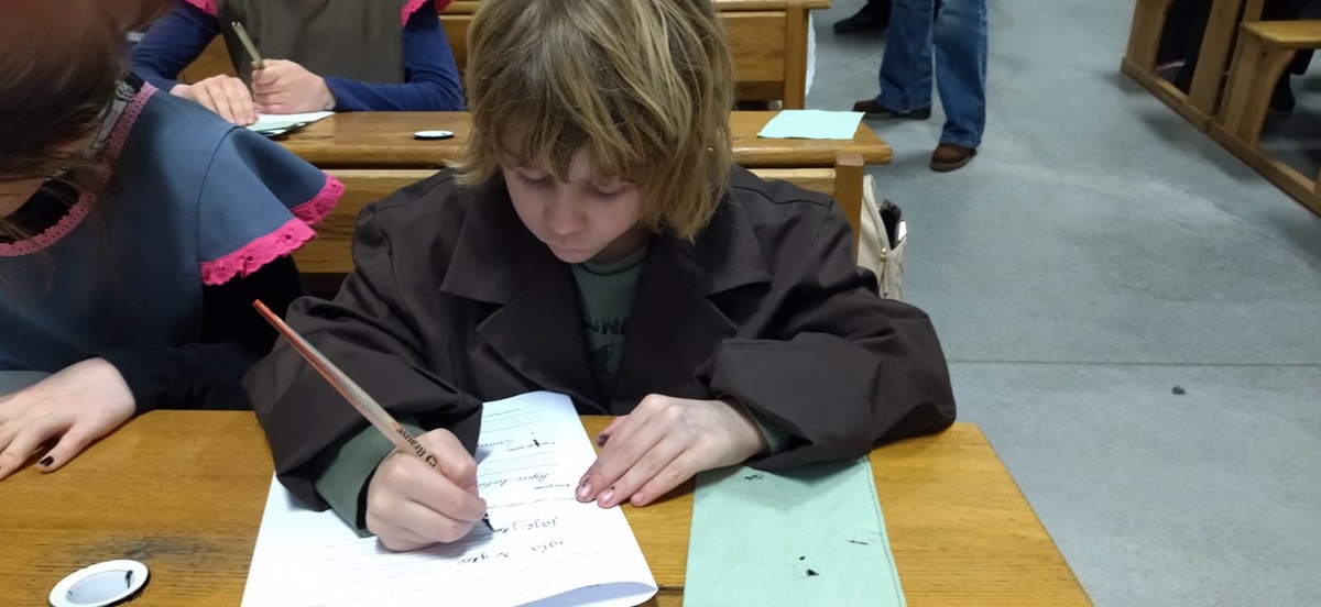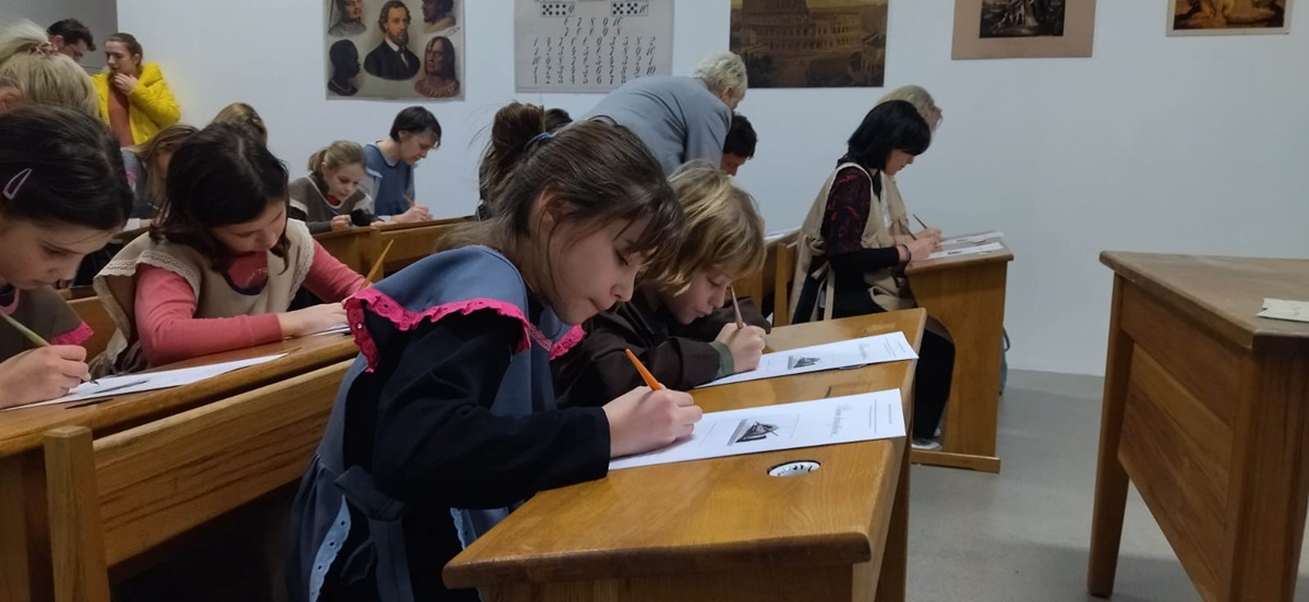 U desetak školskih klupa sjelo je ponajviše djece, no bilo je i odraslih koji su željeli okušati u ovoj zaboravljenoj vještini pisanja, a sve pod budnim okom učiteljice Ivane Dumbović Žužić, više kustosice pedagoginje.