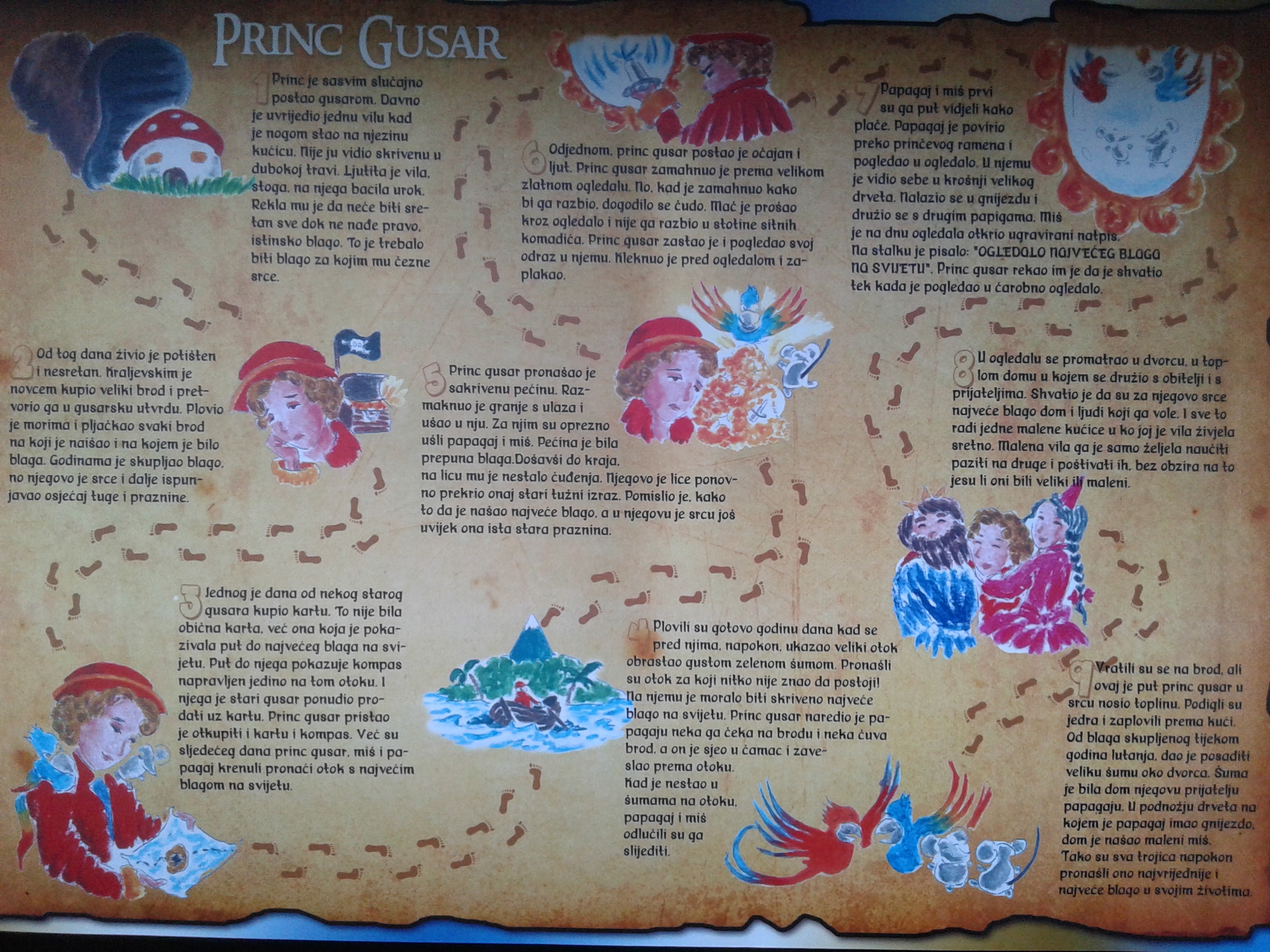 Tema ove slikovnice je Princ gusar koji je jednog dana zgazio kućicu dobre vile koja ga je začarala kazavši mu da neće biti sretan sve dok ne nađe pravo istinsko blago. Princ je potom kupio brod i postao pravi gusar pljačkajući sve brodove kako bi pronašao pravo, istinsko blago. Osvojite kartu i pročitajte kakvo je to blago Princ gusar našao i na što je vila mislila kada ga je začarala.