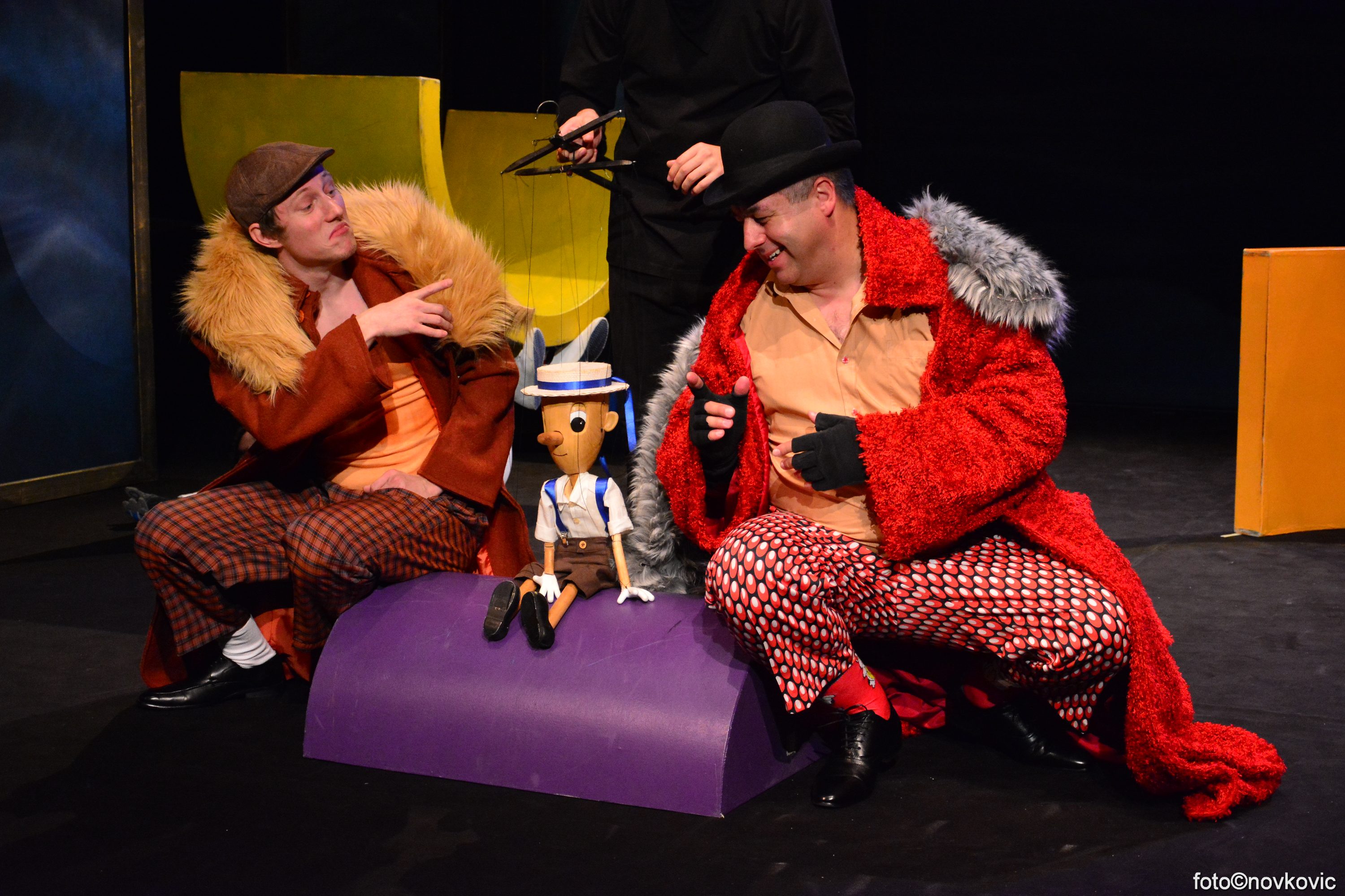 U predstavi glume Adam Skendžić kao Pinocchio, Željko Šestić kao Gepetto te Janko Popović Volarić, Jadran Grubišić, Anđelko Petric, Borna Galinović, Ivan Bošnjak i Ljiljana Štokalo, koja je dala glas Plavoj Vili. Kreatorica lutaka i kostima je Ana Sekulić, scenografkinja Dinka Jeričević, a skladatelj Mate Matišić. Cijene ulaznica su 25 kuna.