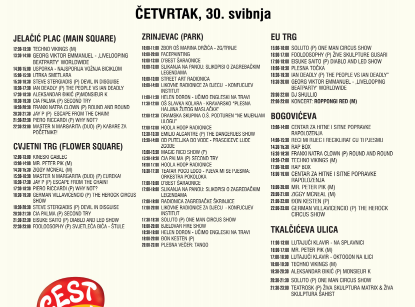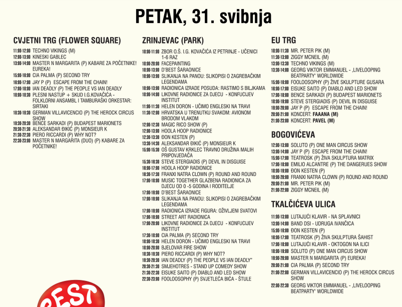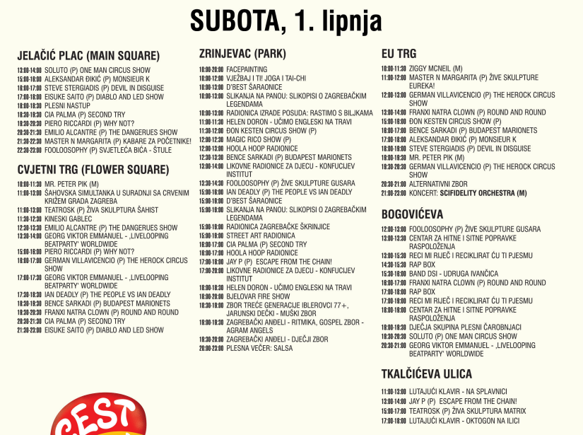 U sklopu ovogodišnjeg Cest is d`Besta, zabava za najmlađe organizirana je na Zrinjevcu. Program na Zrinjevcu ispunjen je brojnim likovnim radionicama, igraonicama, cirkuskim točkama, kazališnim predstavama, nastupima zborova, školicama žongliranja, hodanja po traci.