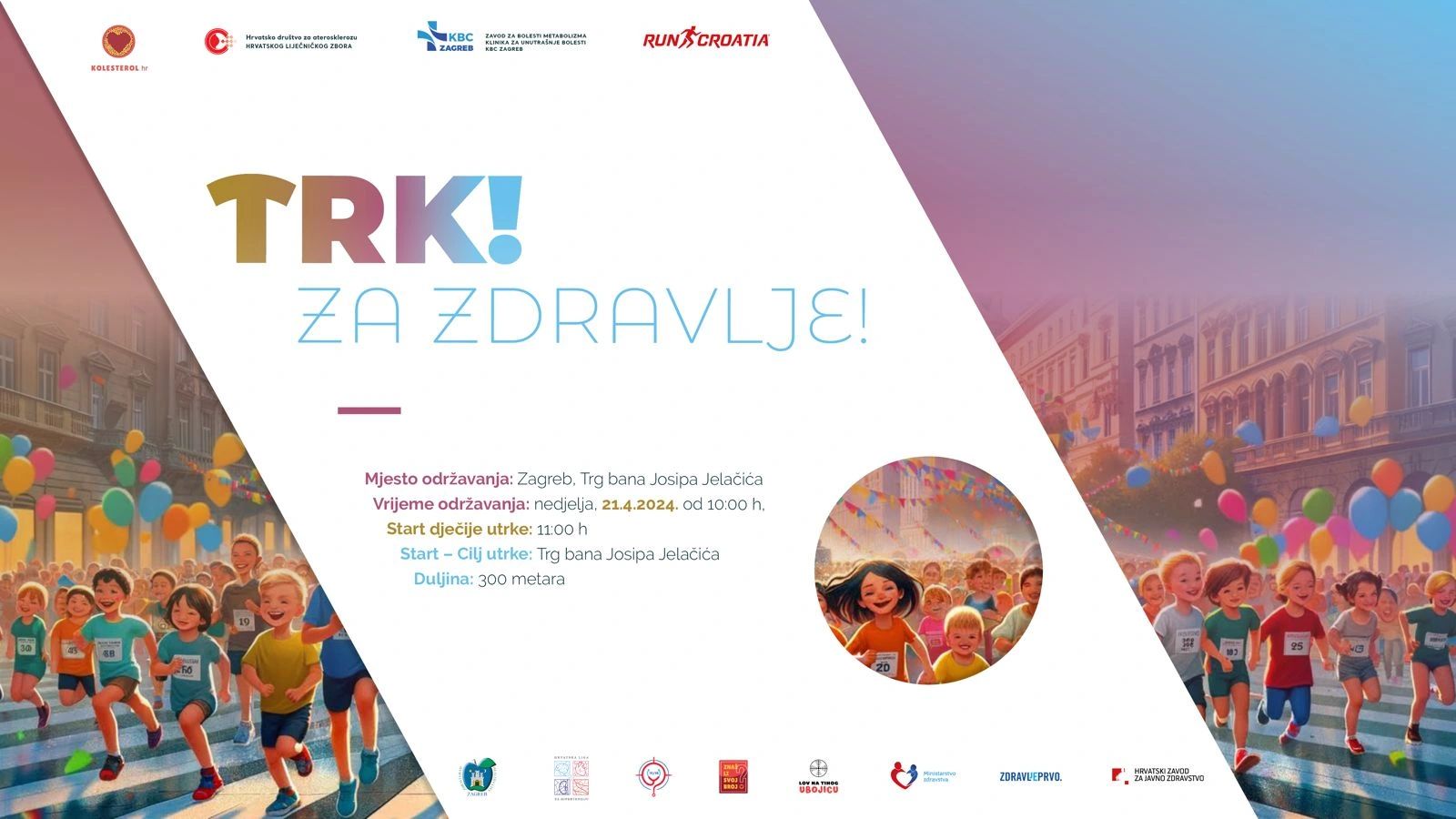 Utrka će se održati u nedjelju, 21. travnja, na Trgu bana Josipa Jelačića gdje će najmlađi imati priliku pokazati svoju brzinu i snagu, naučiti kako se brinuti o vlastitom zdravlju te se dobro zabaviti kroz aktivnosti za cijelu obitelj.