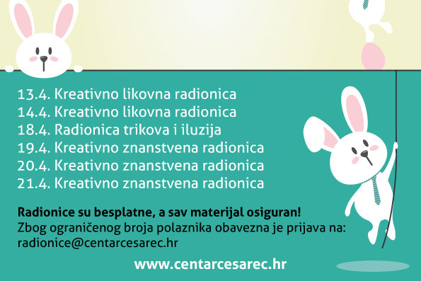 Besplatne, kreativne radionice tijekom proljetnih školskih praznika pripremili su u Centru za kulturu i film Augusta Cesarca. Program počinje 13. travnja