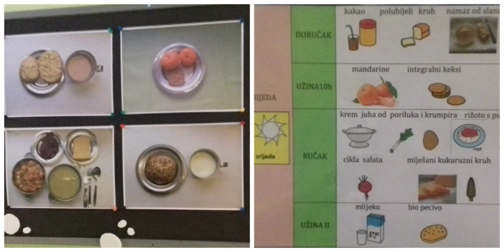Iako je dnevni meni i ranije bio izvješen na oglasnoj ploči, novost je da se sada izvjese i fotografije jela kako bi roditelji i vidjeli kako izgleda dječji obrok. Tako svakoga jutra dok kuharice marljivo pripremaju jela ista se i fotografiraju pa slike dočekaju već prve roditelje. Posebno se pripremaju i jelovnici u vrtićima za djecu s teškoćama u razvoju koji se kroje prema uputama roditelja.