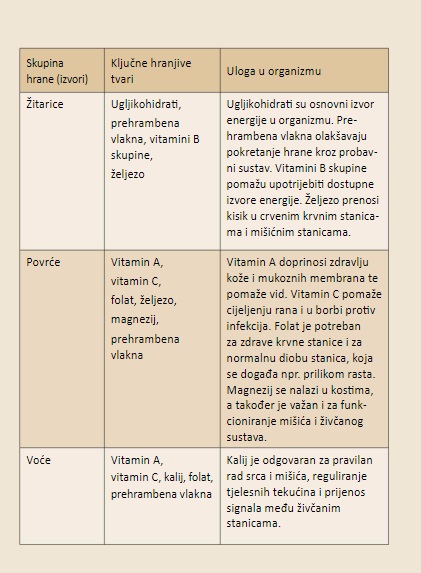 Pojašnjenje u kojim namirnicama ima kojih hranjivih tvari i zašto ih je važno konzumirati:
