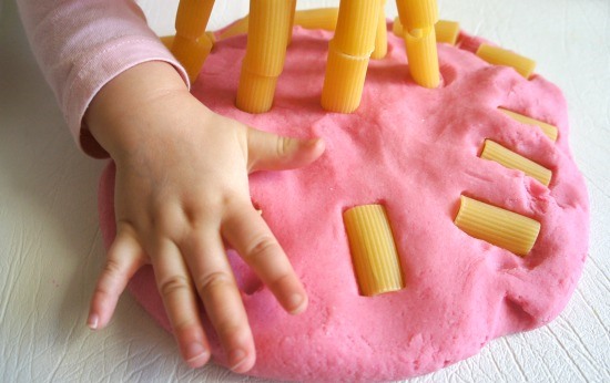 – tijesto za igru, odnosno, tijesto koje možete kupiti ili napraviti u svojoj kuhinji. (Za izradu domaćeg tijesta potrebno vam je: dvije šalice brašna, dvije šalice vode, jedna šalica soli, dvije žlice limunske kiseline (ili žlica octa) i jedna žlica ulja. Sve se pomiješa i kuha par minuta dok se smjesa stvrdne toliko da ju više ne možete miješati. Potom tijesto izvadite, podijelite na nekoliko dijelova i u njega dodajte boju za hranu (može i tempera ako nemate jestivu boju iako je jestiva bolja boja).